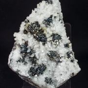 Chalcopyrite coating Tennantite-Tetrahedrite on Quartz with iron oxides inclusions