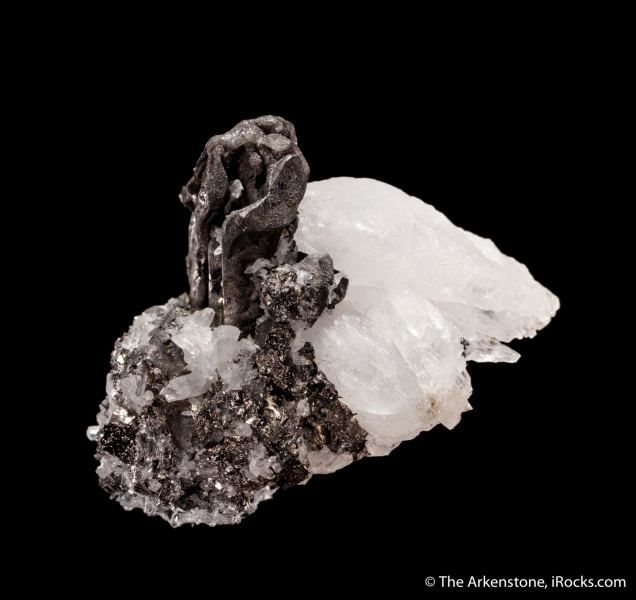 This is a Hessite on Quartz from Botesti, Zlatna, Alba, Romania. A complex single crystal that is so sharp it could come out of a 19th-century silver species textbook, perched in beautiful contrast with quartz, makes this perhaps the most sophisticated and competition-worthy hessite thumbnail that I have handled.Data last checked on 26th Aug 2024 - specimen may no longer be available