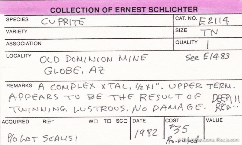 This is a Cuprite from Old Dominion Mine, Globe-Miami Mining Dist., Gila Co., Arizona, USA. This impressive cuprite crystal cluster is a full large thumbnail size and it is blood-red when backlit even moderately, cherry-red with strong backlighting.Data last checked on 26th Aug 2024 - specimen may no longer be available