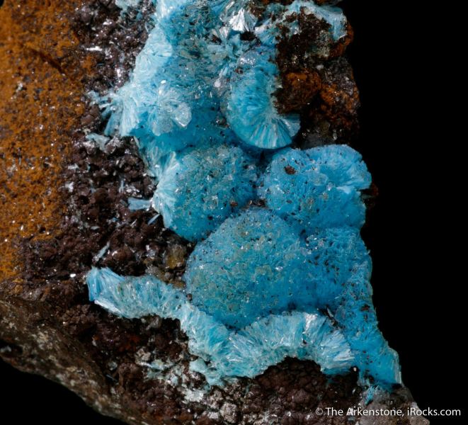 This is a Aurichalcite from UludaÄ Mine, Bursa Prov., Turkey. Interlocked bright blue-green radial balls up to 1 cm across feature on this cabinet specimen of aurichalcite.Data last checked on 29th Jul 2024 - specimen may no longer be available