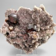 Perfect Sphalerite crystal is esthetically displayed on contrasting druzy Quartz. No damage, this is bright, sharp and far better in person, this crystal glows a rich ruby-red with backlighting, yet still looks fine under normal conditions. An older Shuikoushan specimen with outstanding luster and presence. Excellent value for a clean small cabinet specimen with character.Data last checked on 20th Sep 2022 - specimen may no longer be available