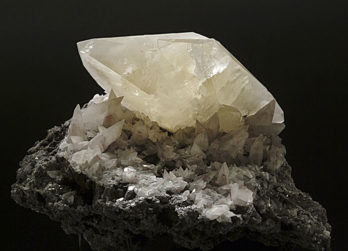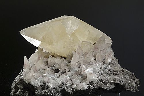 Cadmian Smithsonite on Calcite with Quartz