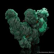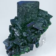 This is a Azurite with Malachite (circa 1930) from Sacramento Shaft, Bisbee, Warren Dist., Mule Mtns., Cochise Co., Arizona, USA. This gorgeous competitive thumbnail specimen is important beyond its first look and features an electric blue and sharp crystal of azurite perched on a velvety malachite ball.Data last checked on 26th Aug 2024 - specimen may no longer be available