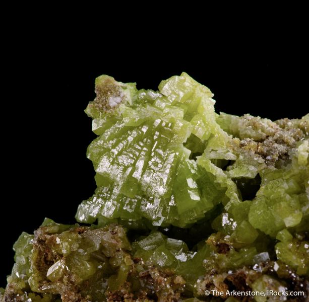 This is a Pyromorphite from San Andres Mine, Espiel, Cordoba, Andalusia, Spain. A very colorful, small cabinet cluster of neon-apple-green, translucent Pyromorphite prisms with delectable wet-look luster from the San Andres Mine of Spain.Data last checked on 29th Jul 2024 - specimen may no longer be available