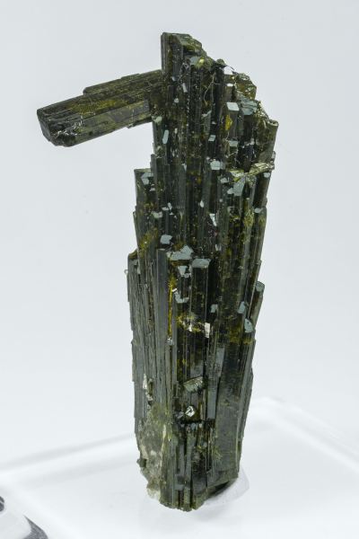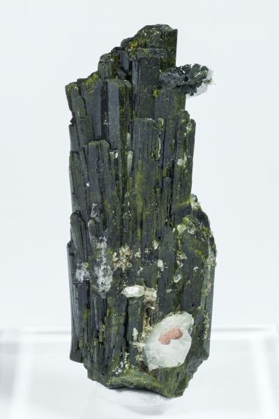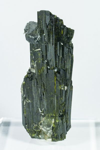 Parallel growths of elongated Epidote crystals, some of them doubly terminated, with sharp crystal forms and excellent terminations. Translucent, shiny, colored deep green, and with small Quartz crystals. An American classic.Green Monster Mountain, Prince of Wales Island, Ketchikan District, Prince of Wales-Outer Ketchikan Borough, Alaska USA