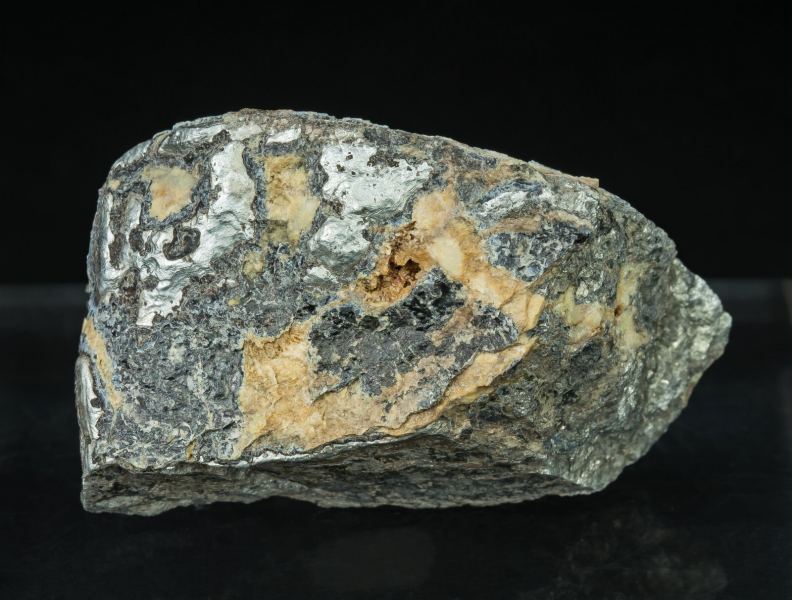 Fine lamellar growths and rounded and poorly defined crystal forms of Antimony, very lustrous, on matrix. From a well known Californian zone but one that is little represented in collections, this specimen comes from the old collection of Robert-Auguste Touchon.