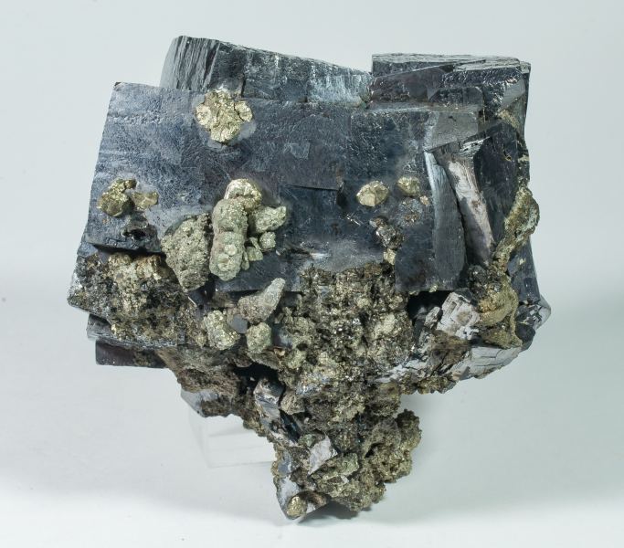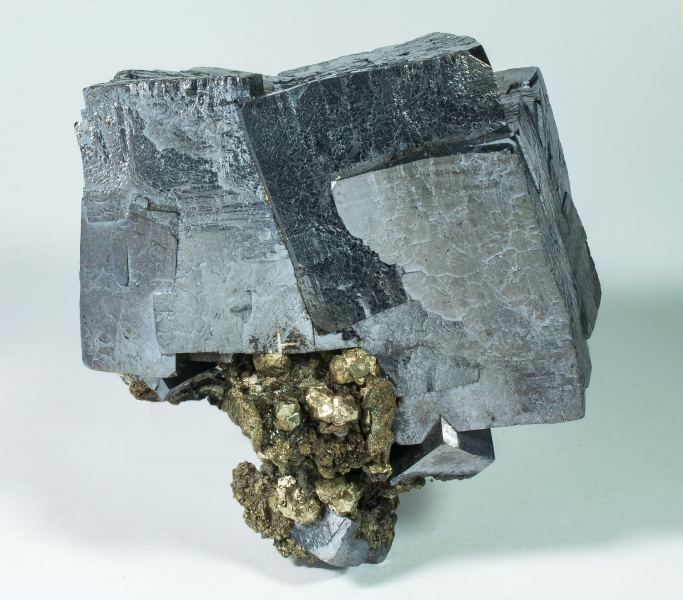 Group of very sharp Galena crystals of good size, very lustrous, with deformed crystal coatings and spheroidal growths of Pyrite.The specimen comes from the Michel Carré collection