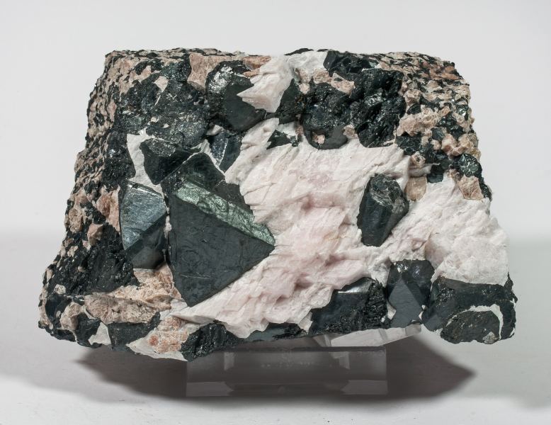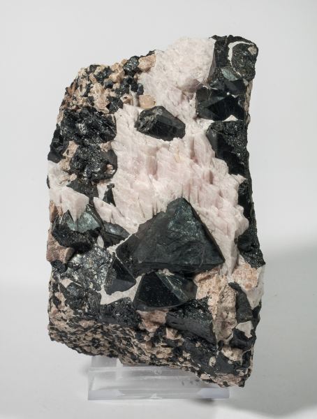 Octahedral Franklinite crystals of considerable size for the species, with very sharp crystal forms, with better luster than usual and on a Calcite matrix with Willemite. A USA classic of very good quality.From one of the type localities for the species.
