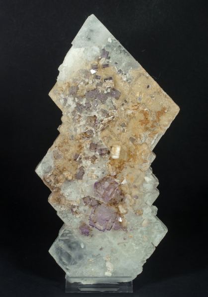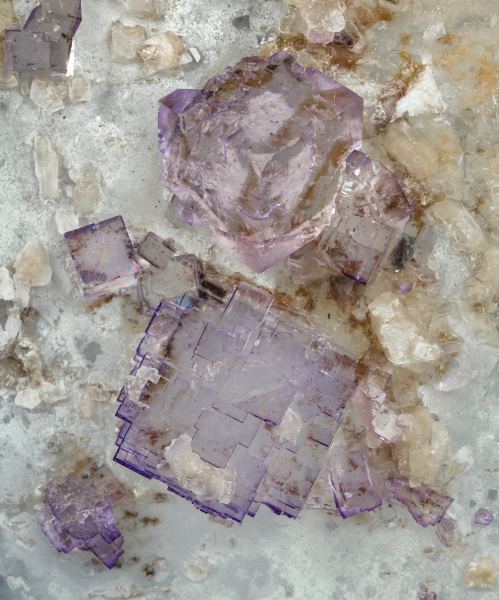 Very transparent and lustrous Fluorite crystals, with a pale lilac color, on a parallel aggregate of white tabular Celestine crystals.Tule Mine, Melchor Múzquiz, Municipio Melchor Múzquiz, Coahuila (Coahuila de Zaragoza) Mexico