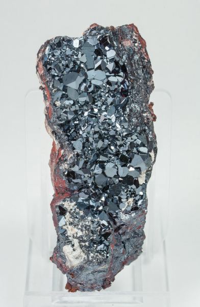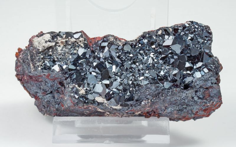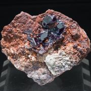 Druse with very sharp Cuprite crystals with the dominant octahedron and with smaller forms of the rhombododecahedron and the cube, translucent, with great luster and a bright red color. On matrix and with white fibrous aggregates of Dickite. With better color and luster than usual, it is of great quality for the locality. It comes from an important European collection.