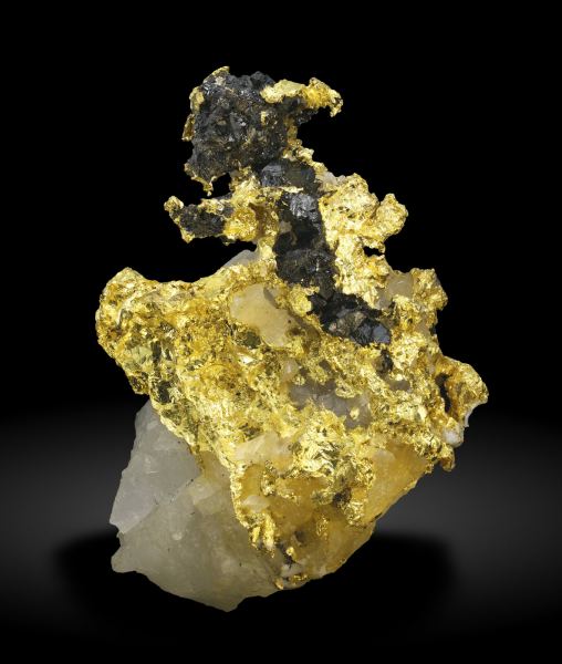 Dendritic growths of Gold crystals, very shiny, on a Quartz matrix, with growths of Sphalerite microcrystals.The Sphalerite has been analyzed and we will send a copy of the analysis to the buyer.