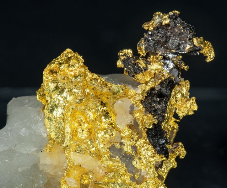Gold (variety Ag-bearing) on Quartz with Sphalerite and Chalcopyrite