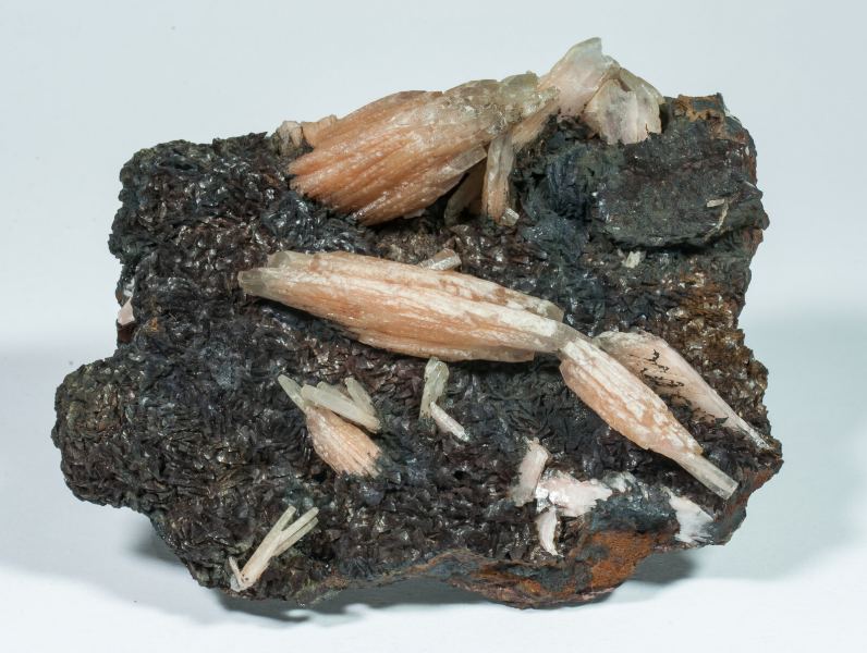 Book-shaped aggregates of very sharp Baryte crystals, translucent, lustrous, colored intense pink, on a Goethite matrix. The specimen is very unusual for the locality, and comes from the collection of Andrés Jiménez Shelly.Lucainena de las Torres Mines, Lucainena de las Torres, Comarca Los Filabres-Tabernas, Almería, Andalusia Spain