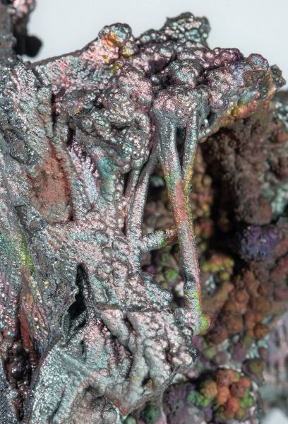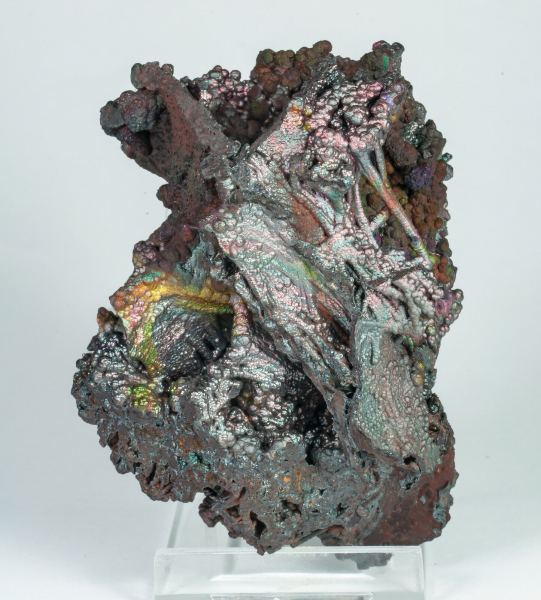 Compared with other goethites from southern Spain, those found in the La Lapilla mine stand out for their delicate latticed growths and very fine arched structures, sometimes almost filamentous, that add to the quality and vivid brilliance of its metallic iridescences, with blue, ocher and reddish reflections, with a predominance of metallic greyish.The specimen comes from the collection of Andrés Jiménez Shelly.