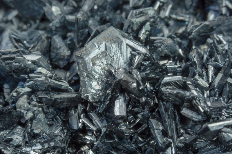 Druse of very sharp Chalcocite crystals that form hexagonal cyclic twins with very well defined faces and edges, flattened, lustrous, and on an unaltered Pyrite matrix.This specimen has been analyzed and we will send a copy of the analysis to the buyer.