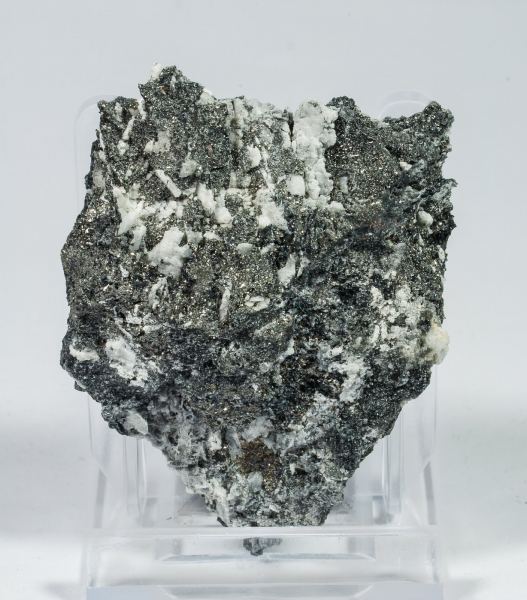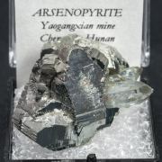 Small sharp Arsenopyrite crystals, lustrous and on matrix, with gray Jamesonite and aggregates of white Valentinite crystals with Senarmontite. A Spanish rarity that we have analyzed and for which we will send a copy of the analyses of the Valentinite, the Senarmontite and the Jamesonite to the buyer.Carlés-Norte cut, Carlés Mine, Ballotal-El Fuxaco, Carlés, Salas, Comarca Valle del Narcea, Principality of Asturias (Asturias) Spain (2002)