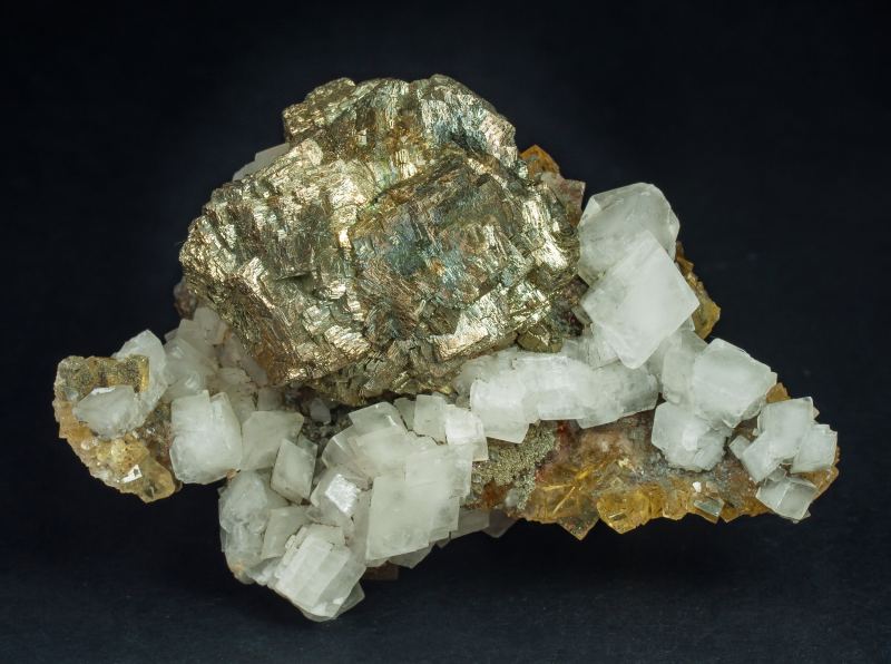 Pyrite with Calcite, Fluorite