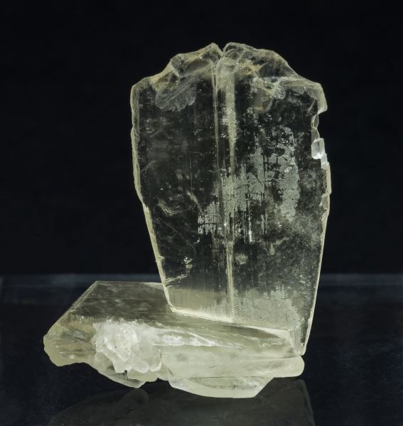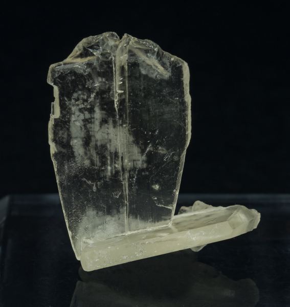 A novelty from Ste. Marie 2022. Group of very sharp Calcite crystals, one of them very aerial, dominantly flattened and with a contact twin of very well defined crystal forms. Transparent and uniform yellow.The specimen comes from a well-known but little-disclosed locality in the Canary Islands in which no finds of this type had been previously made.