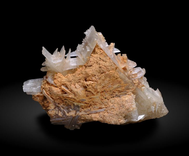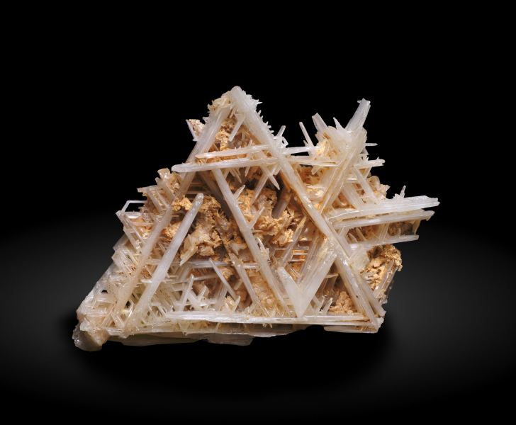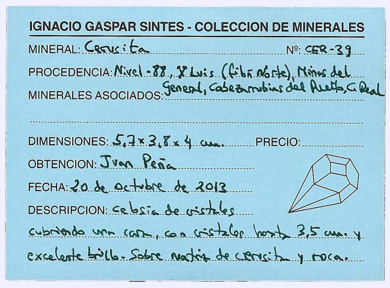 Very aerial reticulated growth of flattened and elongated prismatic Cerussite crystals. The crystals, twinned and with good terminations, are translucent and have a satiny luster.This specimen comes from the collection of Ignacio Gaspar Sintes (number CER-39) and we will send its catalogue file to the buyer.