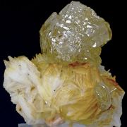 Wulfenite (variety chillagite) with Cerussite, Baryte, Fluorite and Galena