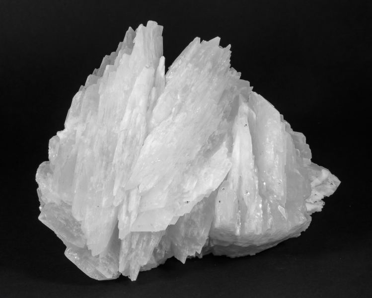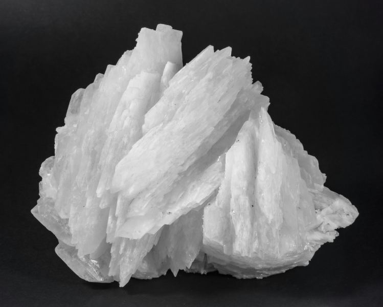 Group of Baryte crystals that form bright leafy aggregates, sharp and interpenetrated with each other. One crystal is adorned at the end by tiny, totally water-clear Quartz crystals.Comes from a mine that has become swallowed by the peri-urban nucleus of Vista Alegre, in the mining district of La Unión-Cartagena.