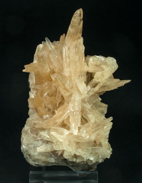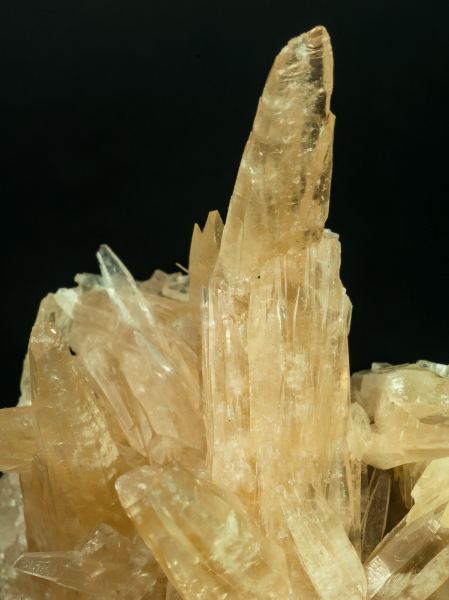 Very aerial group of tapered Aragonite crystals with very sharp terminations, between transparent and translucent and cream-colored.A Spanish classic that comes from the collection of Andrés Jiménez Shelly.