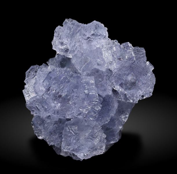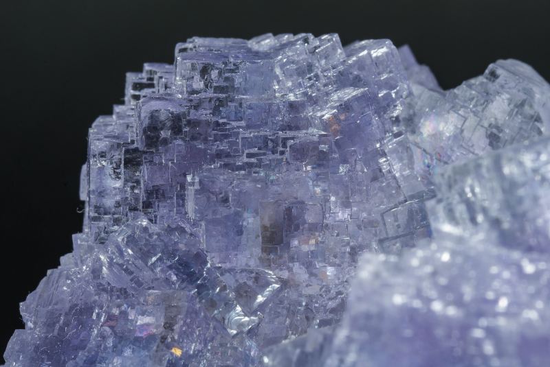 Druse of Fluorite crystals with very marked polycrystalline growths, transparent, with an extraordinary luster, a uniform and vivid color between blue and lilac, and with small white Quartz coatings.La Viesca Mine, La Collada mining area, Huergo, Siero, Comarca Oviedo, Principality of Asturias (Asturias) Spain (±2010)