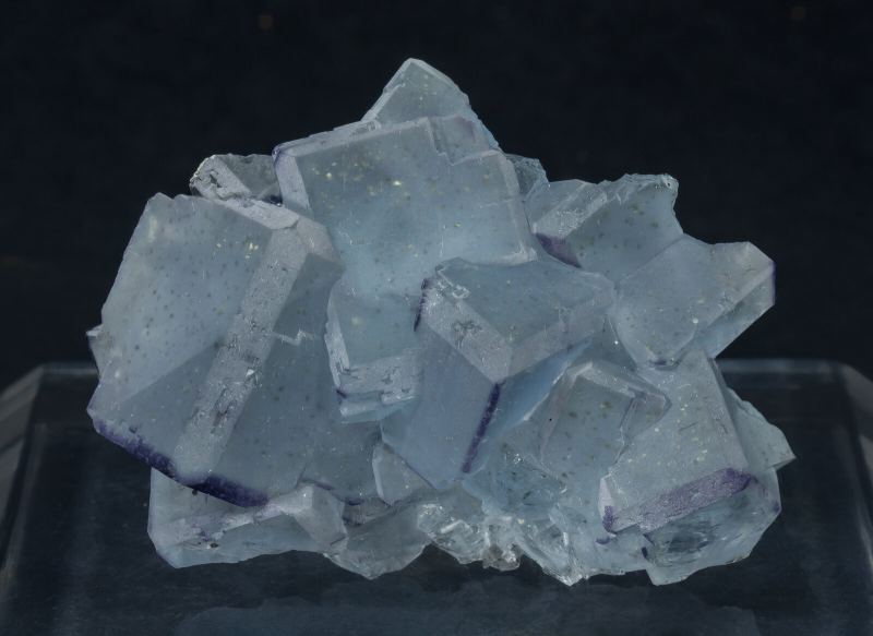 Very aerial group of Fluorite crystals, one of them clearly dominant, with a cubic habit, beveled by dodecahedron faces, translucent and blue, with geometric zones of deep violet color on some of the edges.From a classic Spanish locality from which it is now very difficult to obtain specimens.