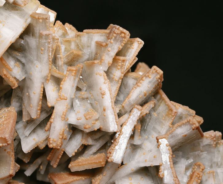 Great specimen, both for its size and for being very unusual, with very sharp Baryte crystals, between tabular and lamellar, and totally different from the classic ones from this deposit. In addition, the crystals are covered by very unusual orange Sphalerite crystals (analyzed) which form globular groups.The specimen undoubtedly owes its rarity to the fact that it is very old and comes from the collection of Pierre-Marie Guy, who was the one who acquired it from the miner Robert Guy.