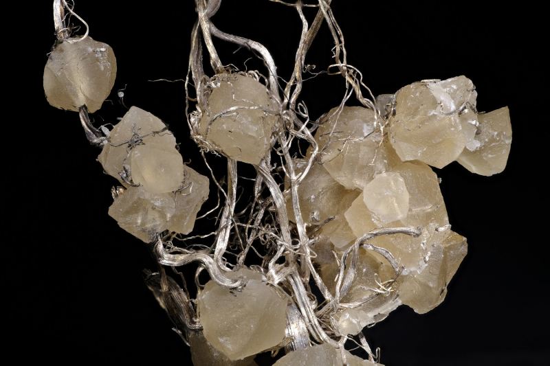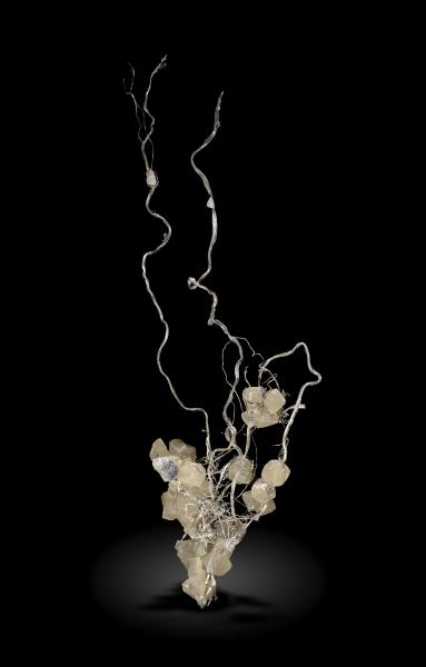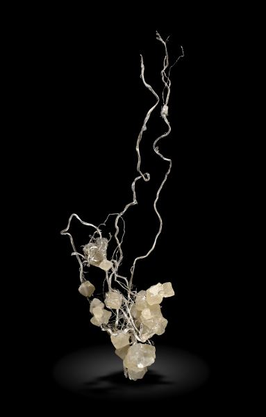 A novelty on the market in 2022. Very aerial and aesthetic arborescent growth of Silver, with a very marked spinel-law twin plane. On matrix, with numerous small Calcite crystals that adorn it and differentiate it from the classic Hongda silvers. These pieces come from a find made in a small gold working, currently closed, and which showed no evidence of such good silvers until now.
