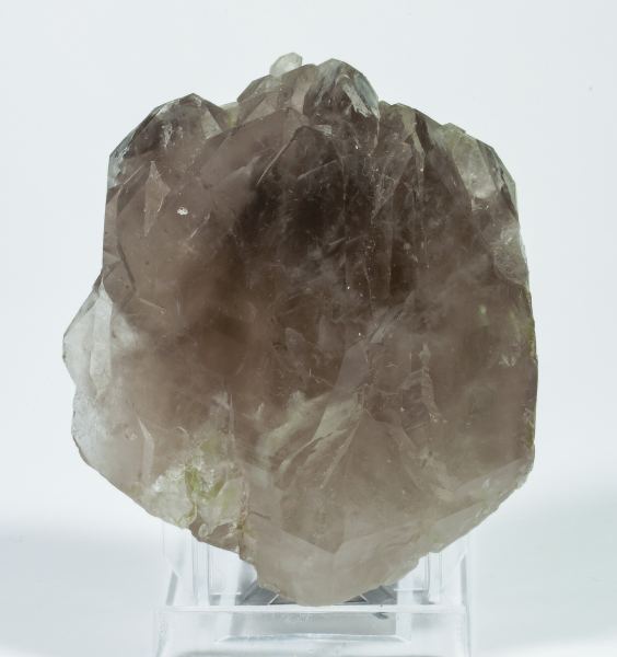 Flattened crystal of Quartz, smoky variety, with more intense color in the center of the crystal and polycrystalline terminations on one of its faces. From a classic deposit for Catalan mineralogy.Mas Sever Quarry, Massabè (Mas Ceber), Sils, Comarca La Selva, Gerona / Girona, Catalonia / Catalunya Spain (2004-2010)