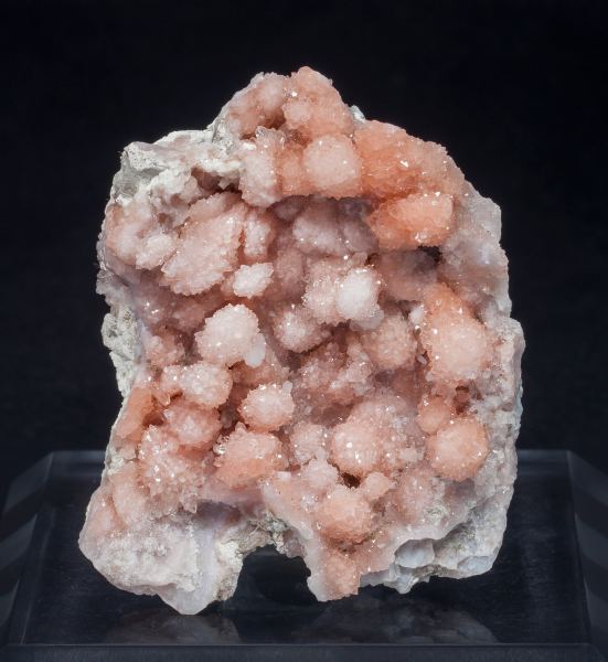 Peculiar polycrystalline growths and crystal rosettes of translucent, lustrous Quartz in a rock matrix corresponding to a volcanic tuff. The intense pink color is its natural intrinsic color, not due to inclusions of iron oxides. The precise name of the mine is not yet known, but it will surely become known in future.Huancayo Province, Junín Department Peru (2020)