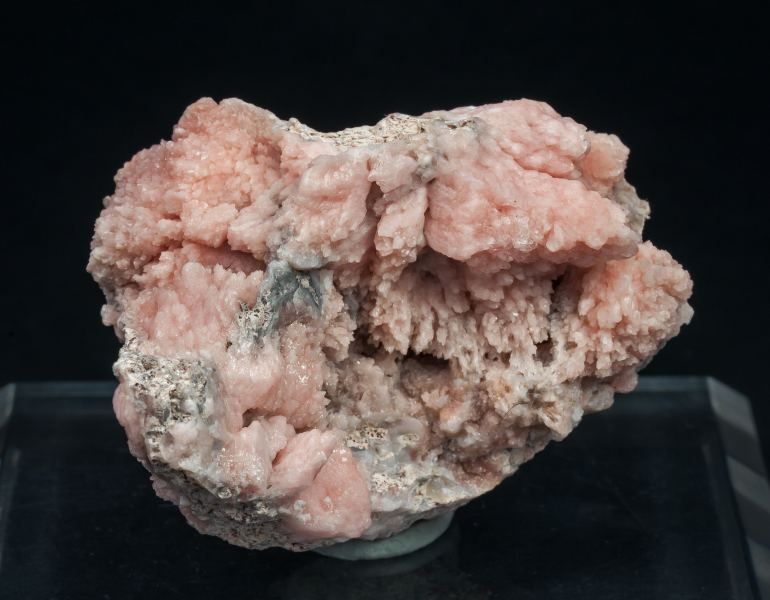 Peculiar polycrystalline growths and crystal rosettes of translucent, lustrous Quartz in a rock matrix corresponding to a volcanic tuff. The intense pink color is its natural intrinsic color, not due to inclusions of iron oxides.Huancayo Province, Junín Department Peru(2021)