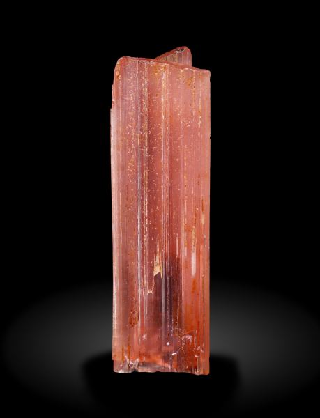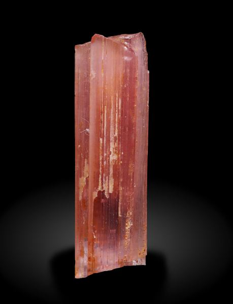 Very sharp crystal of Väyrynenite, a rare phosphate of beryllium and manganese, with very well defined edges and faces, fine parallel growths and good terminations. It is translucent, very lustrous and bright pink, more intense than usual in this type of specimen.Shakpo Mine, Shigar Valley, Shigar District, Gilgit-Baltistan (Northern Areas) Pakistan (2015-2016)