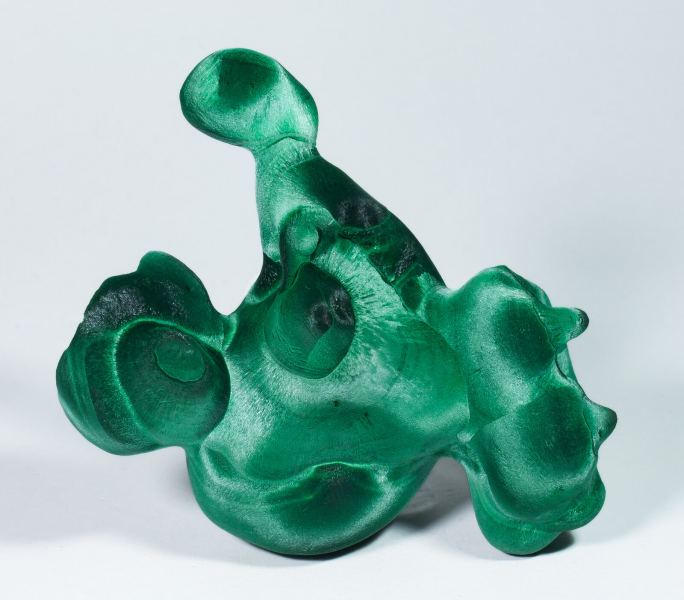 Botryoidal growth of extraordinarily aesthetic shapes of Malachite, with banding in different shades of green and an intense silky luster which gives it a peculiar chatoyant appearance.Shilu Mine, Yangchun, Yangjiang Prefecture, Guangdong Province China (±1995)