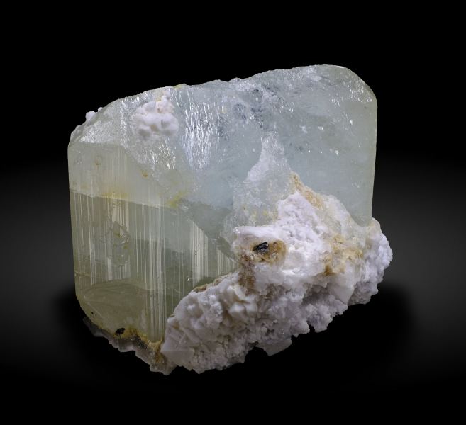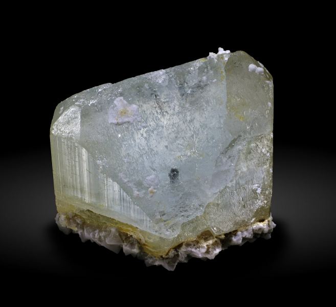 Isolated Topaz crystal of good size, on matrix, with very sharp crystal forms, between transparent and translucent depending on the area, lustrous and pale blue, a rarity in China with this quality and size.Daguishan, Babu District, Hezhou Prefecture, Guangxi Zhuang Autonomous Region China (10/2021)
