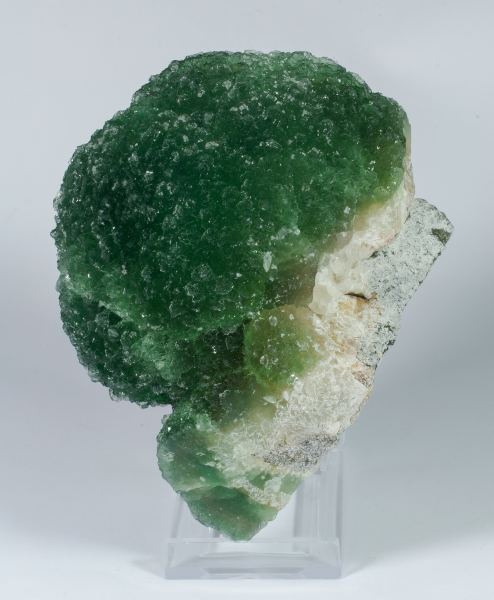 Growth of small Fluorite crystals that form a large sphere. Translucent, with excellent luster and an intense and uniform dark green color, which is remarkable since the vast majority of pieces found so far in this mining district were more or less intense lilac-purple, but they are not noted for a greenish color as intense as the one shown by this specimen.Guxian, Tongbai, Nanyang Prefecture, Henan Province China (2021)