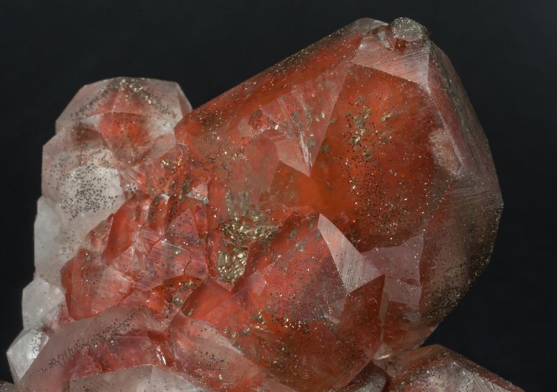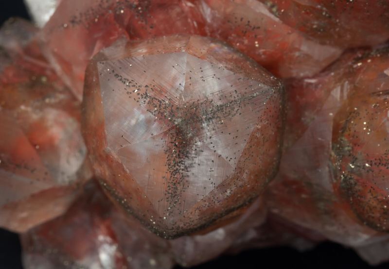 Group of Calcite crystals dominated by trapezohedron forms, with faces and edges perfectly defined and with color caused by iron oxide inclusions that grow oriented on a first generation 'phantom' of Calcite crystals.Comes from a deposit type that corresponds to an iron ore affected by a skarn.
