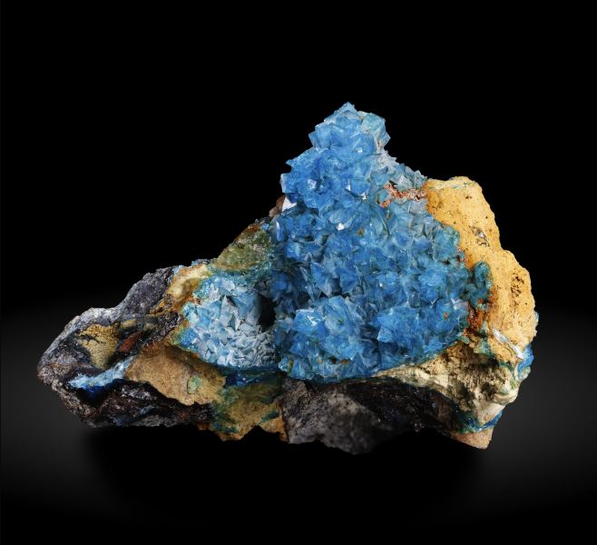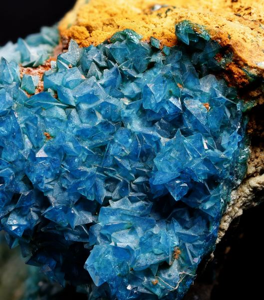 Interesting novelty of the year 2021. Very sharp bipyramidal crystals of Liroconite on matrix, with bright luster and an intense and uniform blue color.The specimen, rich in crystals and of high quality, has been analyzed in detail due to the curious presence of greenish tones in some crystals that turned out to be due to minor iron impurities. We will send a copy of the analysis to the buyer.