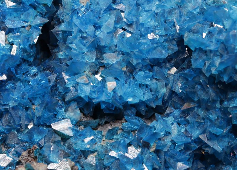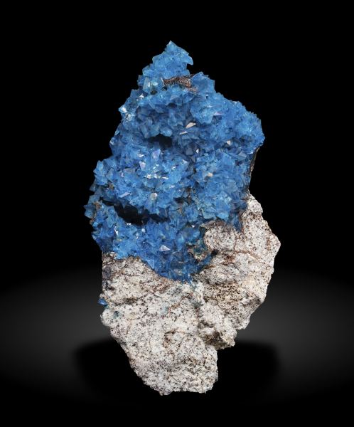 Interesting novelty of the year 2021. Very sharp bipyramidal crystals of Liroconite on matrix, with bright luster and an intense and uniform blue color.The specimen, very rich in crystals and of high quality, has been analyzed in detail due to the curious presence of greenish tones in some crystals that turned out to be due to minor iron impurities. We will send a copy of the analysis to the buyer.