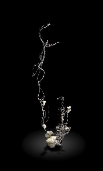 A novelty on the market in 2022. Very aerial and aesthetic arborescent growth of Silver, with a very marked spinel-law twin plane. With small Calcite crystals that adorn it and differentiate it from the classic Hongda silvers. These pieces come from a find made in a small gold working, currently closed, and which showed no evidence of such good silvers until now.
