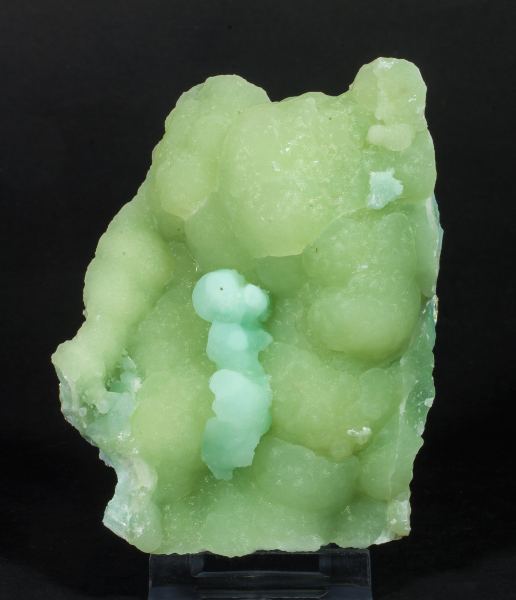 New on the market in 2022. Botryoidal growths of Aragonite, very aerial, translucent and with an intense blue color due to inclusions of copper salts. Curiously, its duller green matrix is Calcite instead of Aragonite, as analysis surprisingly showed the presence of both polymorphs in the same piece.Dongchuan District, Kunming Prefecture, Yunnan Province China (12/2021)