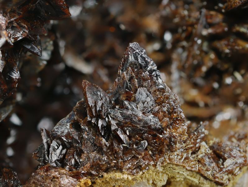 Vug of very sharp lanceolate Descloizite crystals, with bright luster and a reddish brown color. From a locality little known to mineral collectors.Venus Mine, El Guaico Mining District, Minas Department, Córdoba Province Argentina