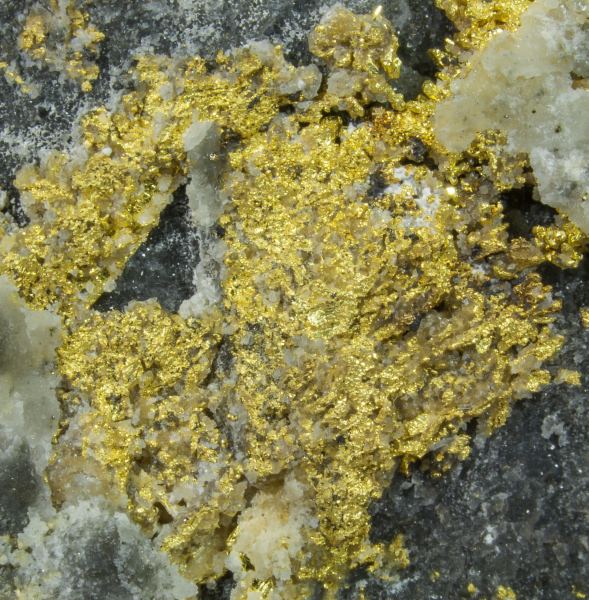 Skeletal crystals and leafy growths of Gold, very lustrous and with good contrast to their rock matrix. The specimen comes from a discovery a few years ago in a mining district of Colombia that was little known until now.From the Raúl Sanabria collection, whose label we will send to the buyer.