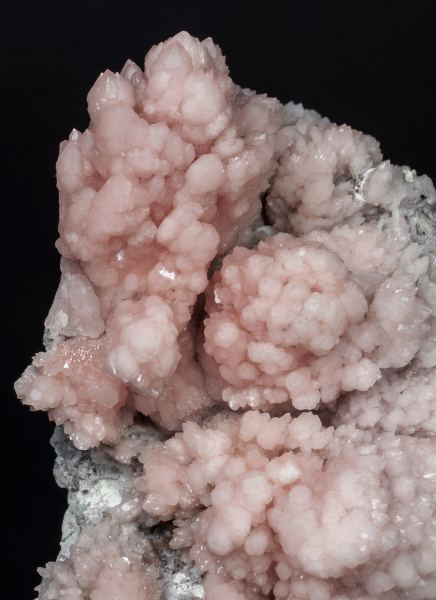 Spheroidal growths on a matrix of translucent, intense pink and lustrous Quartz crystals, whose color is not due to inclusions of iron oxides, but is their natural color.Huancayo Province, Junín Department Peru (02/2022)