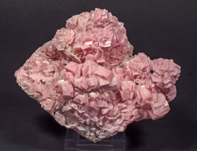 Druse on matrix of rhombohedral Rhodochrosite crystals, very sharp, with good luster and a very uniform, intense and vivid pink color. Altogether a piece with great aesthetics, very well balanced.Manuelita Mine, ↓1400 m., Morococha District, Yauli Province, Junín Department Peru (03/2019 )