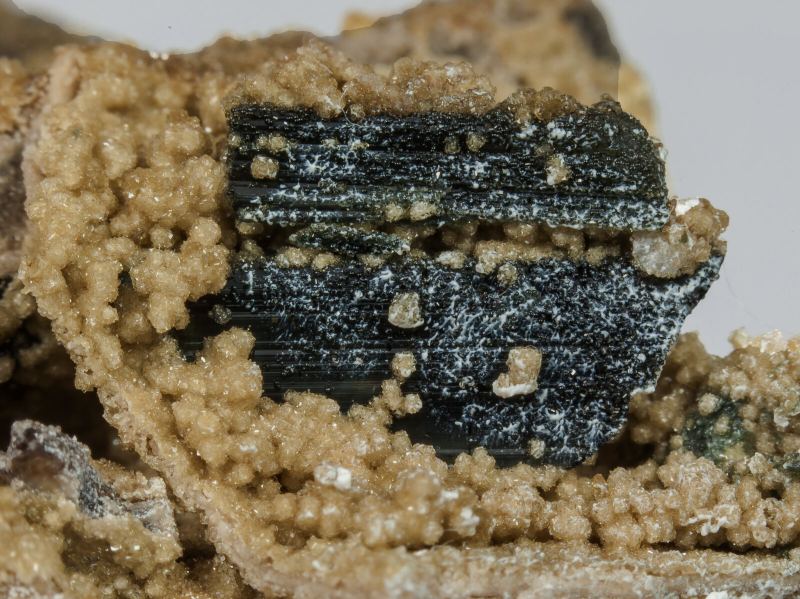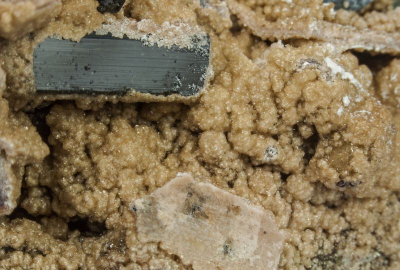 Spheroidal aggregates of Zanazziite microcrystals, a rare phosphate of calcium, magnesium and beryllium, translucent, lustrous, and light cream in color. On matrix with Elbaite crystals and small Microcline coatings.Ponte do Piauí Mine, Piauí Valley, Taquaral, Itinga, Jequitinhonha, Minas Gerais Brazil