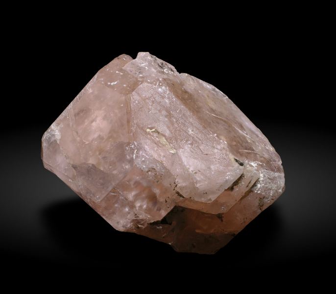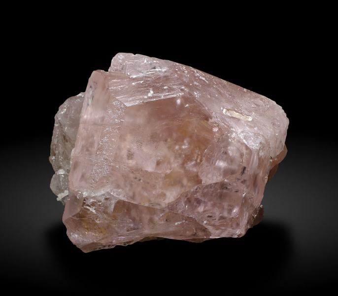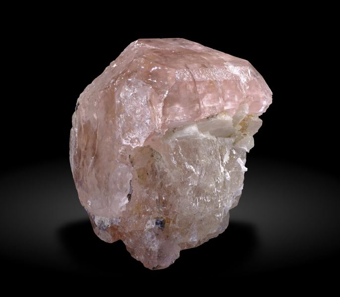 Beryl crystal (morganite variety) with a hexagonal profile etched in some parts by natural dissolution channels. The crystal is between transparent and translucent, with concentric geometric color zoning and good luster. An old Brazilian classic.Urucum Mine, Galiléia, Vale do Rio Doce, Minas Gerais Brazil