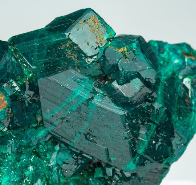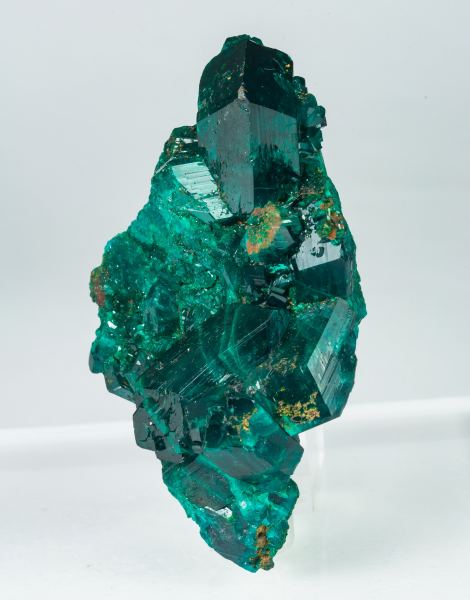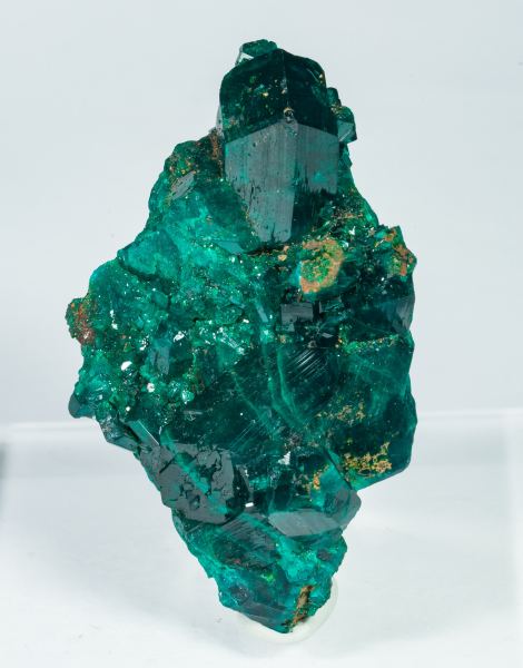Group of Dioptase crystals on matrix, one of them clearly dominant, with a prismatic habit and acute rhombohedral terminations. Very lustrous, with very deep color.Mindouli, Mindouli District, Pool Department Republic of the Congo