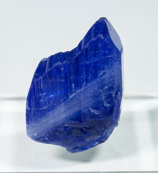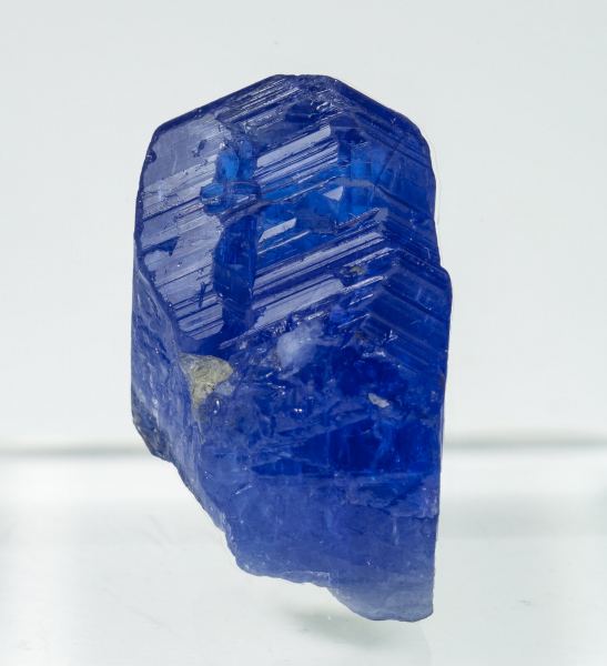 Obtained at Ste. Marie 2022Zoisite crystal (tanzanite variety) with very sharp crystal forms, with fine parallel growths and deep hopper faces, transparent to translucent, very lustrous, and with an intense, deep and uniform lavender-blue color.